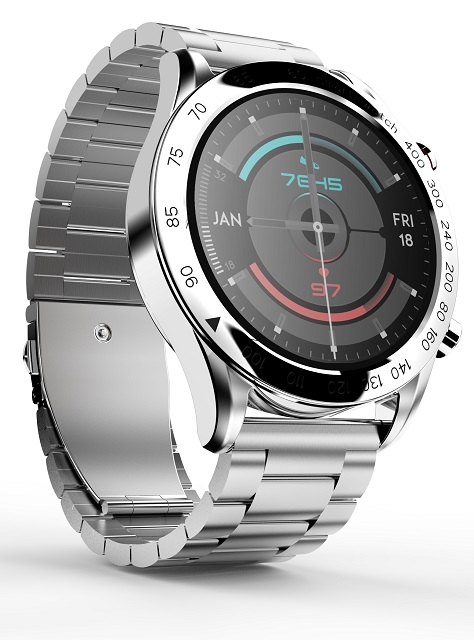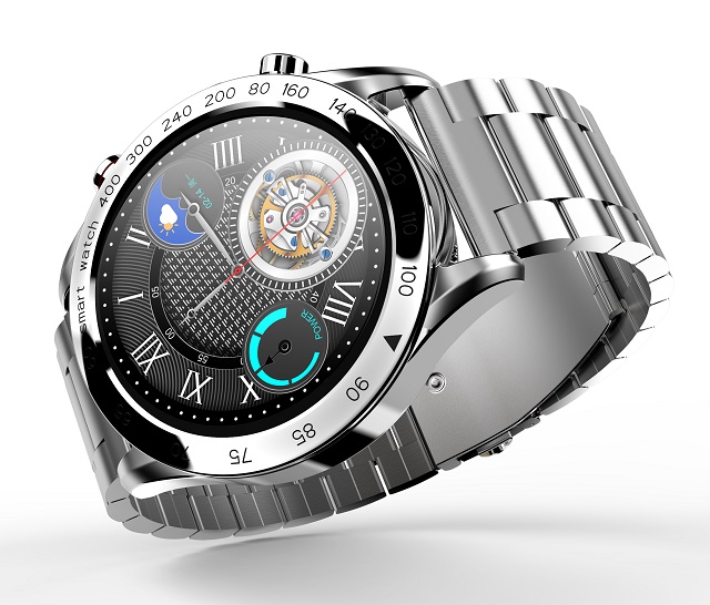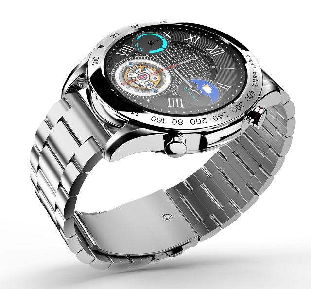 Prémiové nerezové chytré hodinky, ctící design švýcarských hodinek, s výkonnými funkcemi a úžasnou povrchovou úpravou.