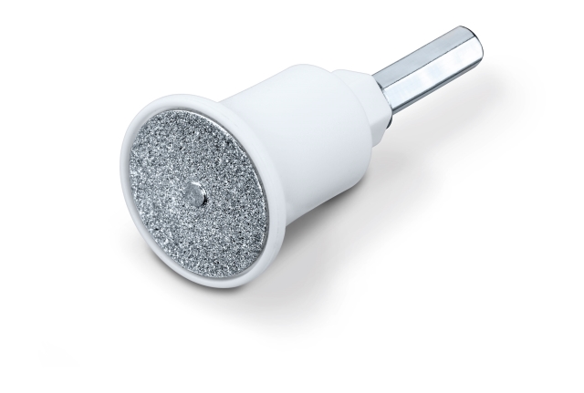 Hrubá zrnka v safírovém disku pilují a pečují o nehty.