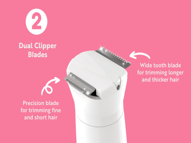 součástí balení je střihací nástavec, který umožňuje stříhat chloupky ve třech různých délkách.